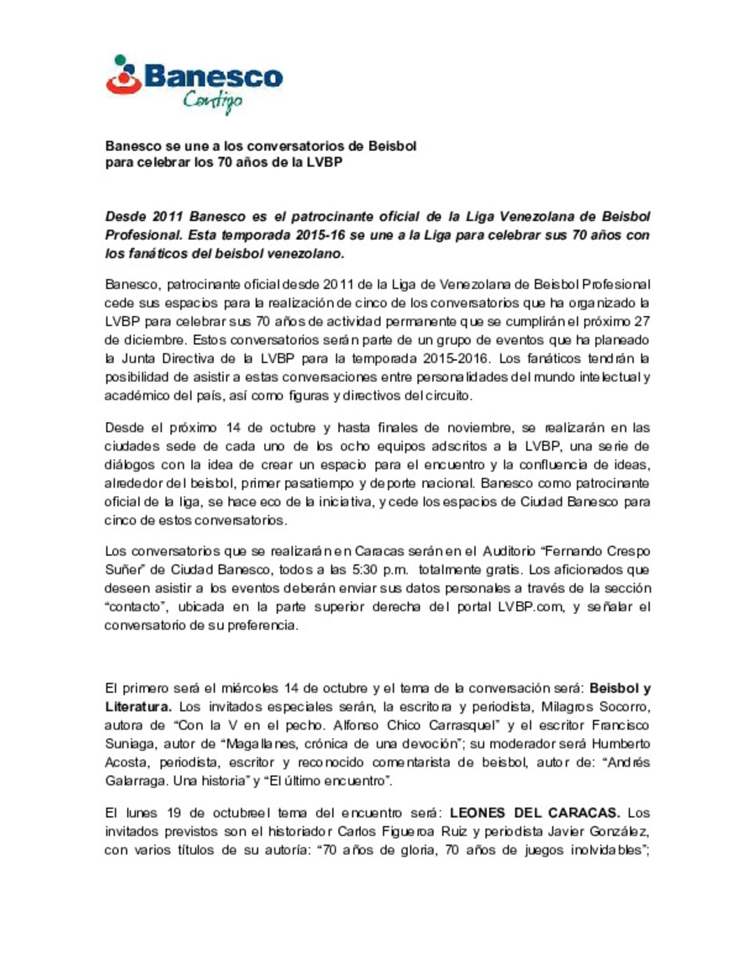 Banesco se une a los conversatorios de Beisbol para celebrar los 70 años de la LVBP