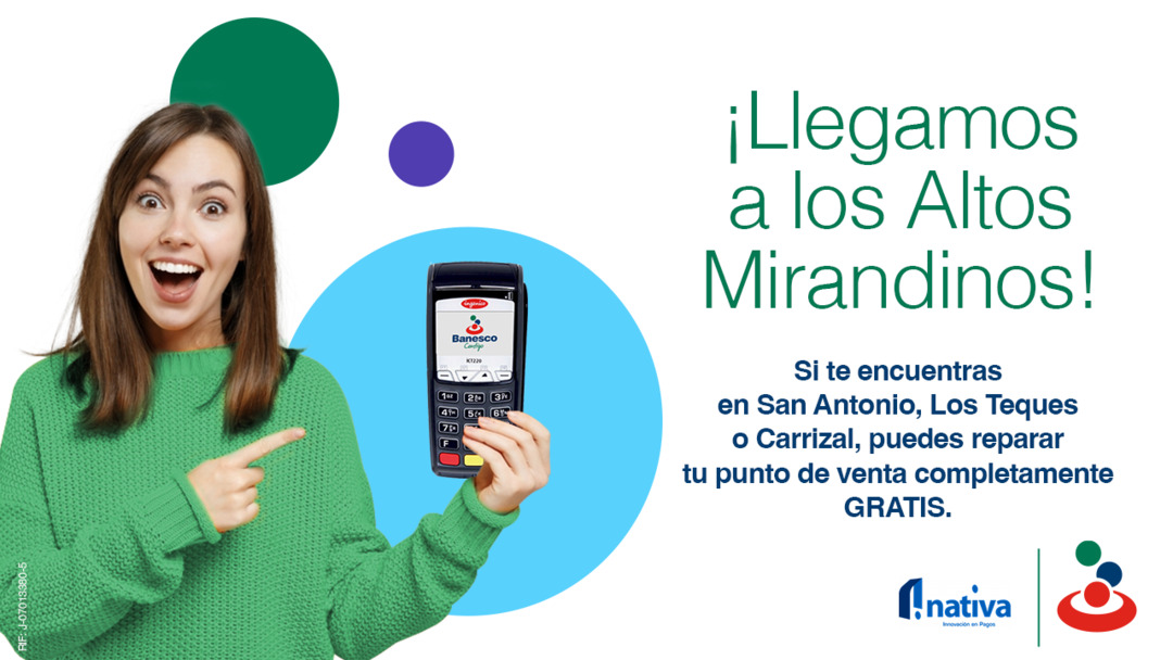 Campaña informativa de nuestro aliado comercial Nativa Pagos que ofrece a los afiliados comerciales Banesco, la reparación de sus puntos de venta sin costo.