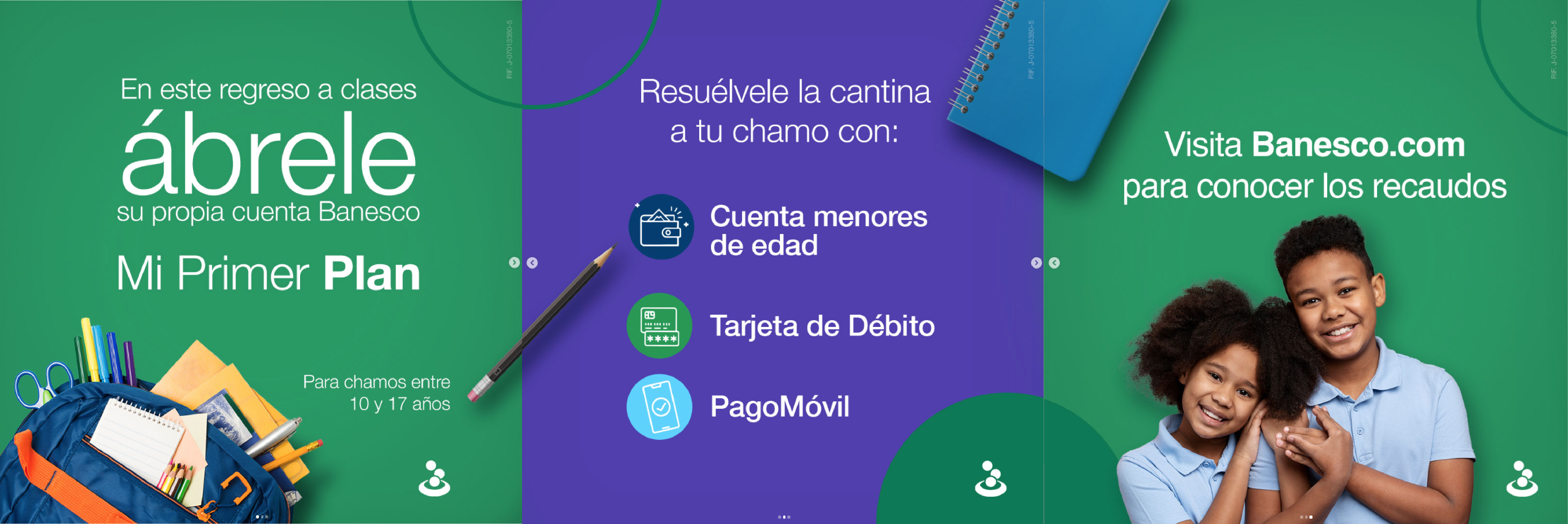 Una cuenta de menores de edad, a partir de los 10 hasta los 17 años; Su propia Tarjeta de Débito; Acceso fácil, rápido y seguro a BanescOnline y BanescoMóvil y PagoMóvil.