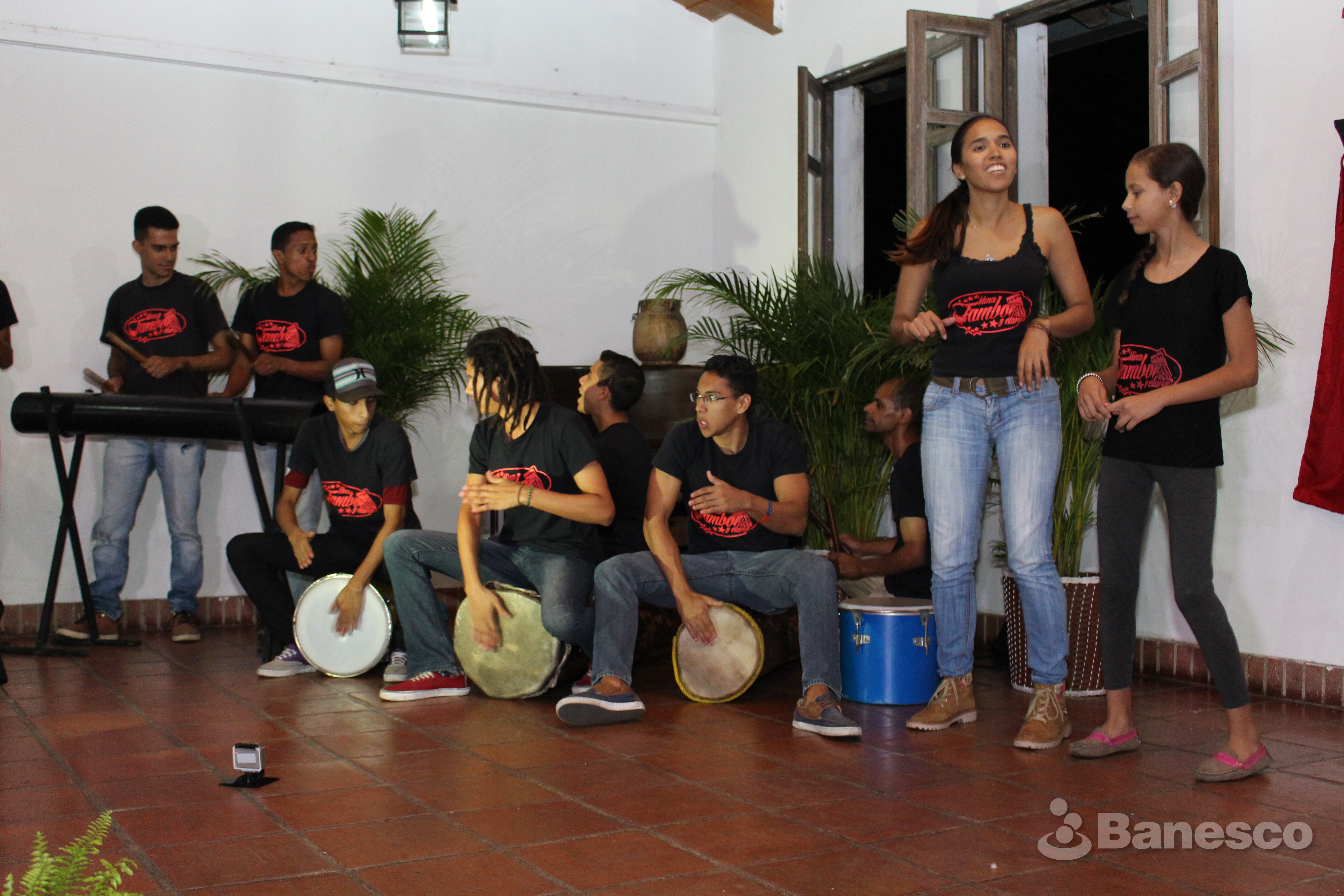 Un grupo de jóvenes deleitaron a los asistentes con música de tambor para acompañar a los bailarines de los "Diablos Danzantes de Yare", con motivo de la inauguración de la exposición fotográfica "El lenguaje de los diablos" realizada en los espacios del Centro Social y Cultural Don Henrique Antonio Eraso en El Hatillo.
