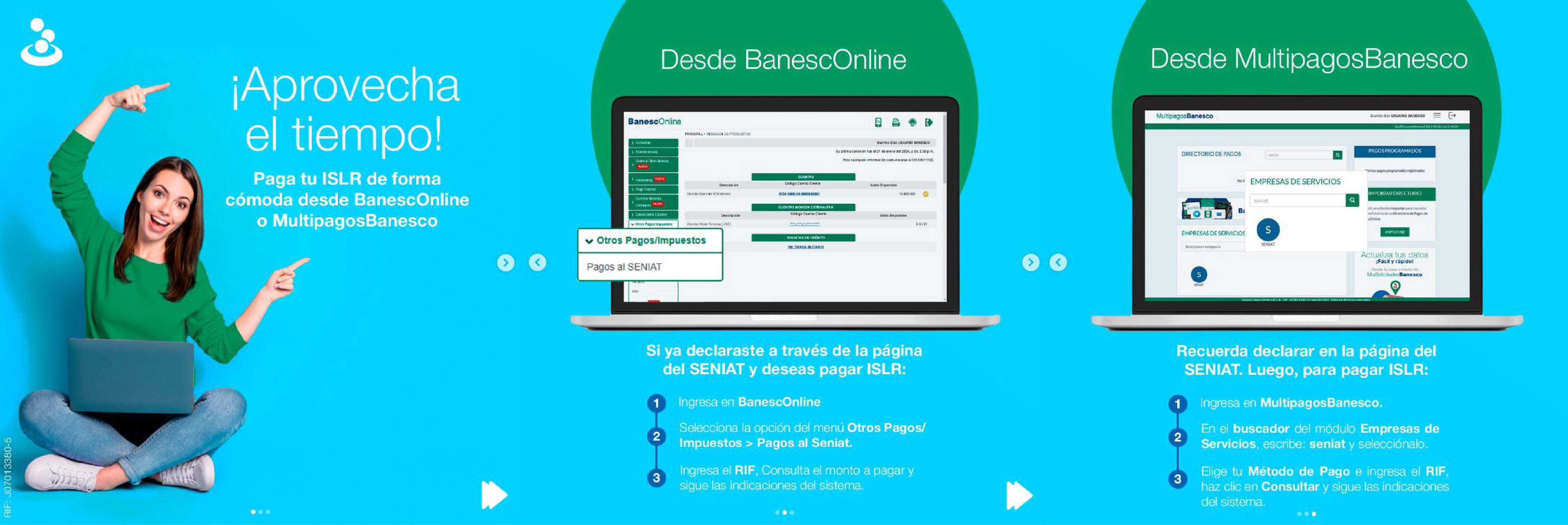 Hacer tus pagos al SENIAT siempre es cómodo y seguro con Banesco