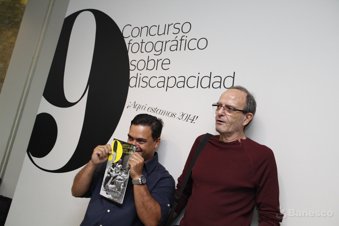 Participante y representante durante la entrega de premios del Concurso fotográfico sobre personas con discapacidad ¡Aquí estamos 2014! realizado en Ciudad Banesco.