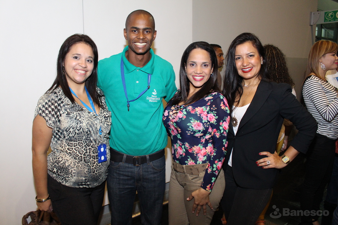 Colaboradores compartiendo en el brindis realizado en el pasillo central del piso 2 de Ciudad Banesco, con motivo de celebrarse la premiación de "Empresario Banca Comunitaria".