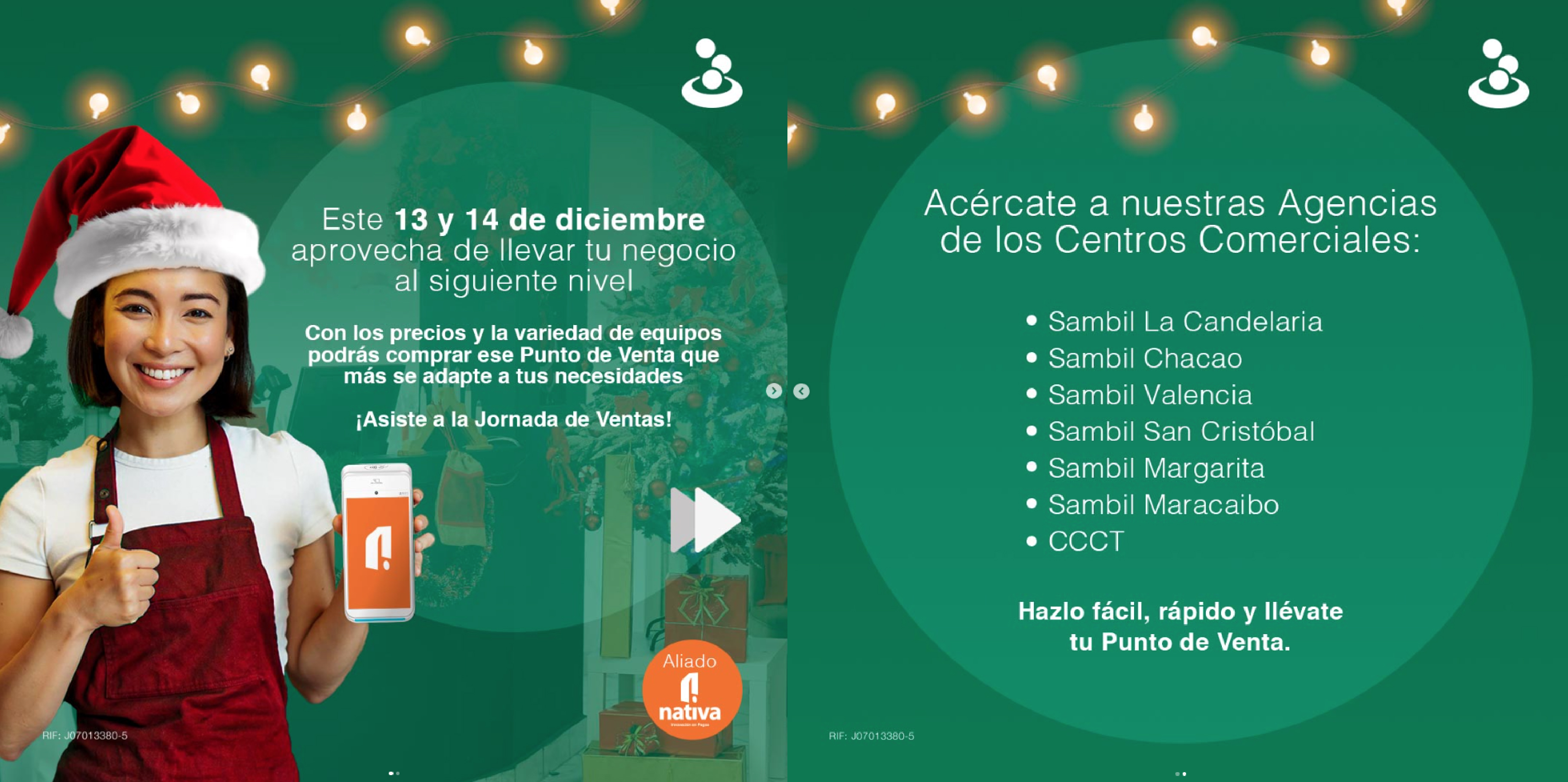Con nuestro aliado @nativapagos te esperamos hoy viernes 13 y mañana sábado 14 de diciembre en las Agencias de los Centros Comerciales: