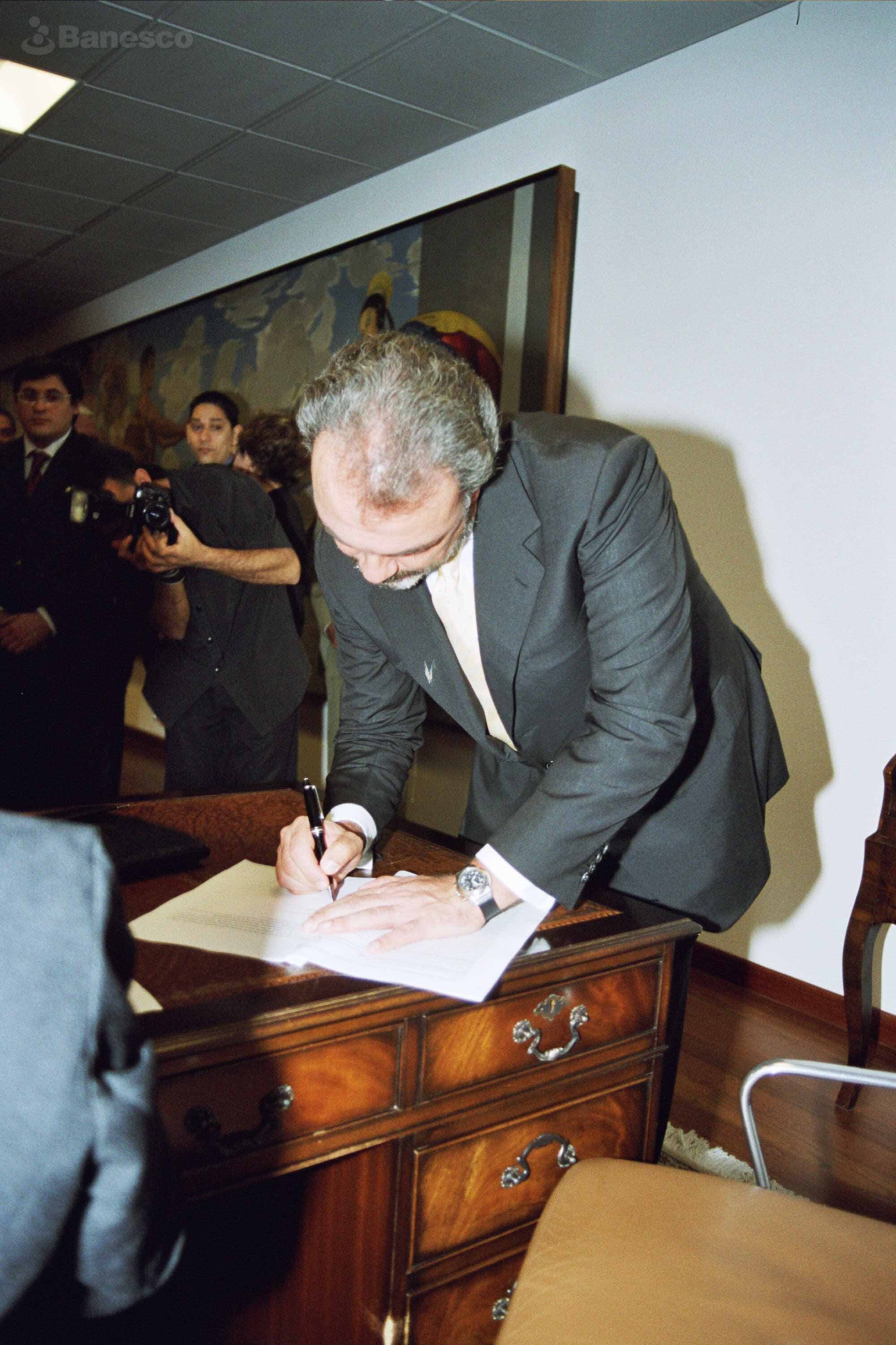 Luis Xavier Luján en el acto protocolar con motivo de celebrarse la firma del convenio entre la institución bancaria y Fundación del Estado para el Sistema Nacional de las Orquestas Juveniles e Infantiles de Venezuela (FESNOJIV).