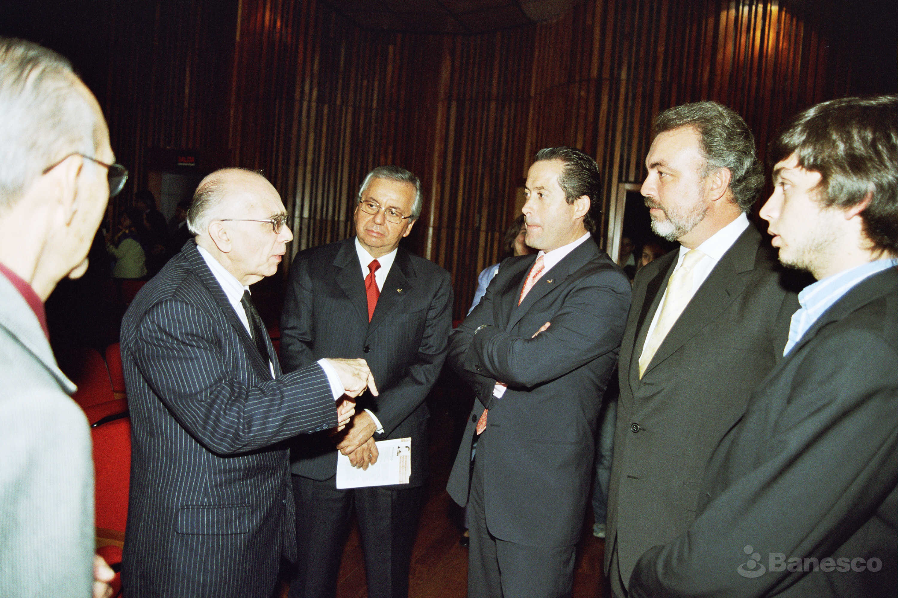 Al finalizar el concierto Vivaldi, el maestro José Antonio Abreu conversa con Nelson Becerra, Juan Carlos Escotet y Luis Xavier Luján.