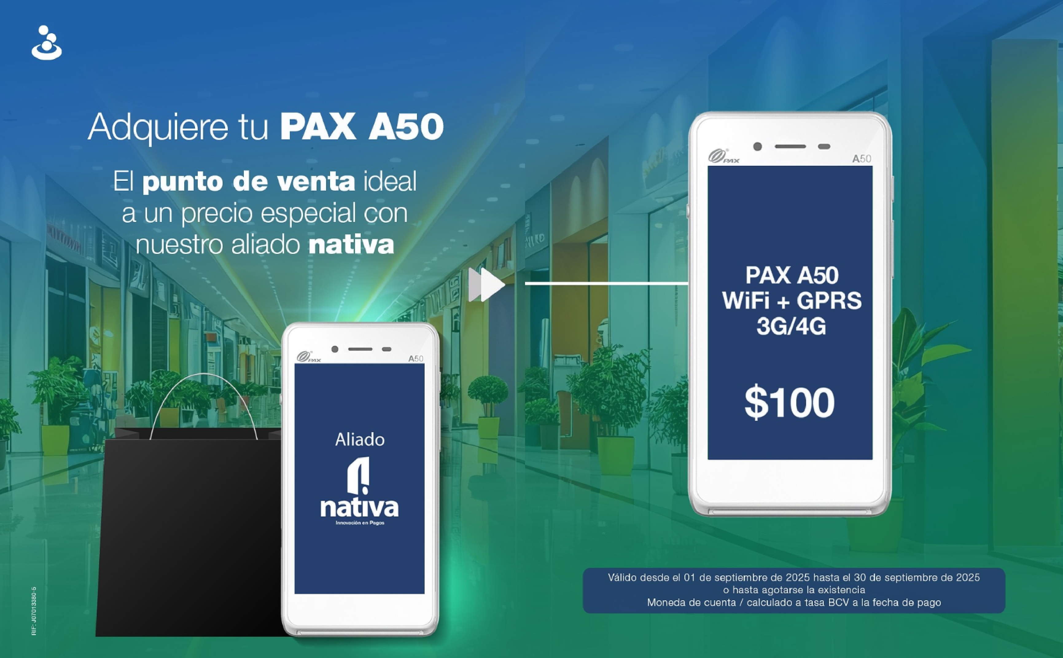 Con el aliado @nativapagos tienes la oportunidad de adquirir tu Punto de Venta PAX A50 por tan solo $100*.