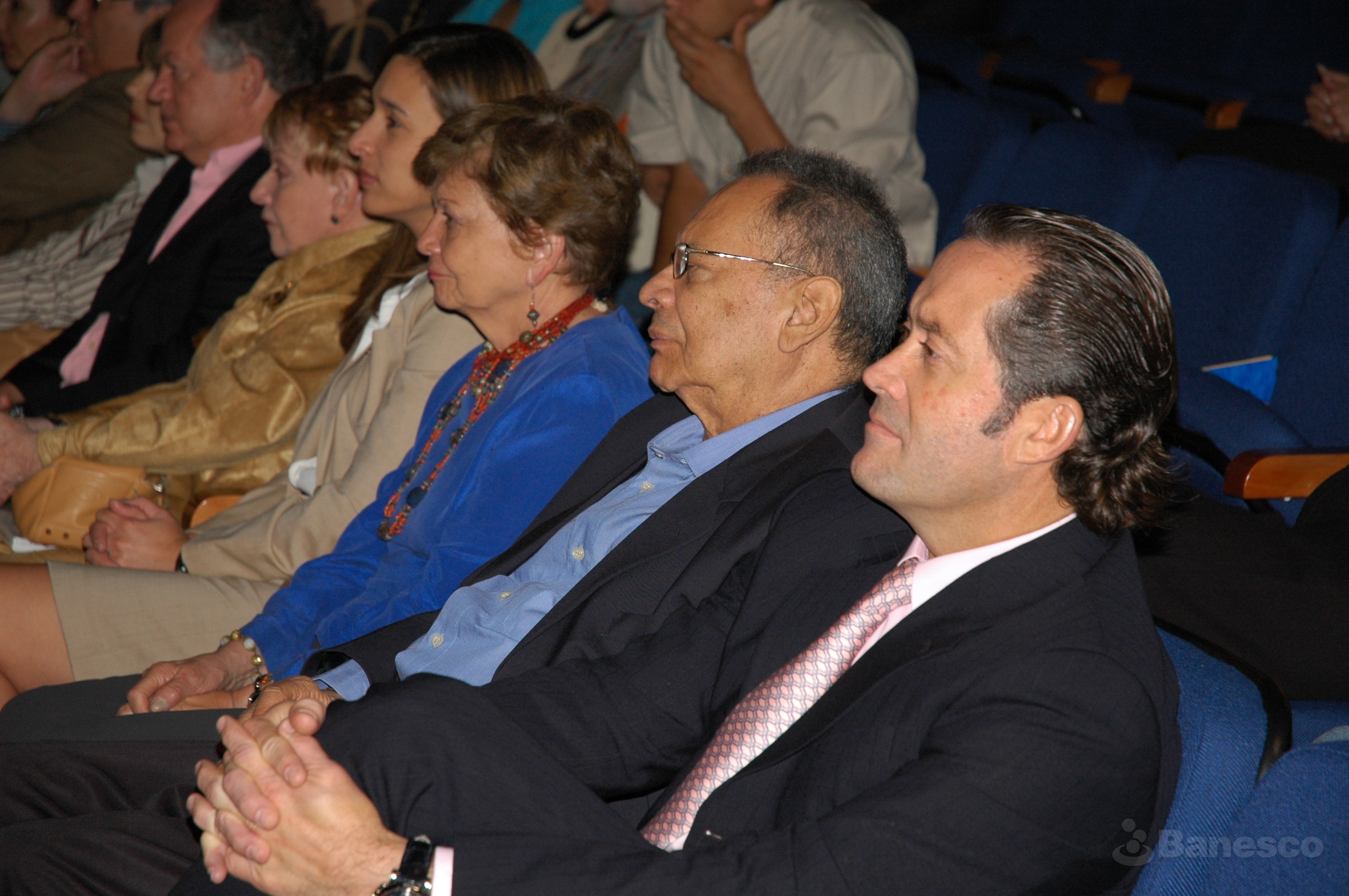 Sofía Imber, Claudia Valladares, Pedro León Zapata y Juan Carlos Escotet durante la proyección de los documentales del cineasta César Cortez "Zapata Humoris Causa" y "Sofía en Tres Tiempos" realizado en el auditorio Fernando Crespo Suñer de Ciudad Banesco.