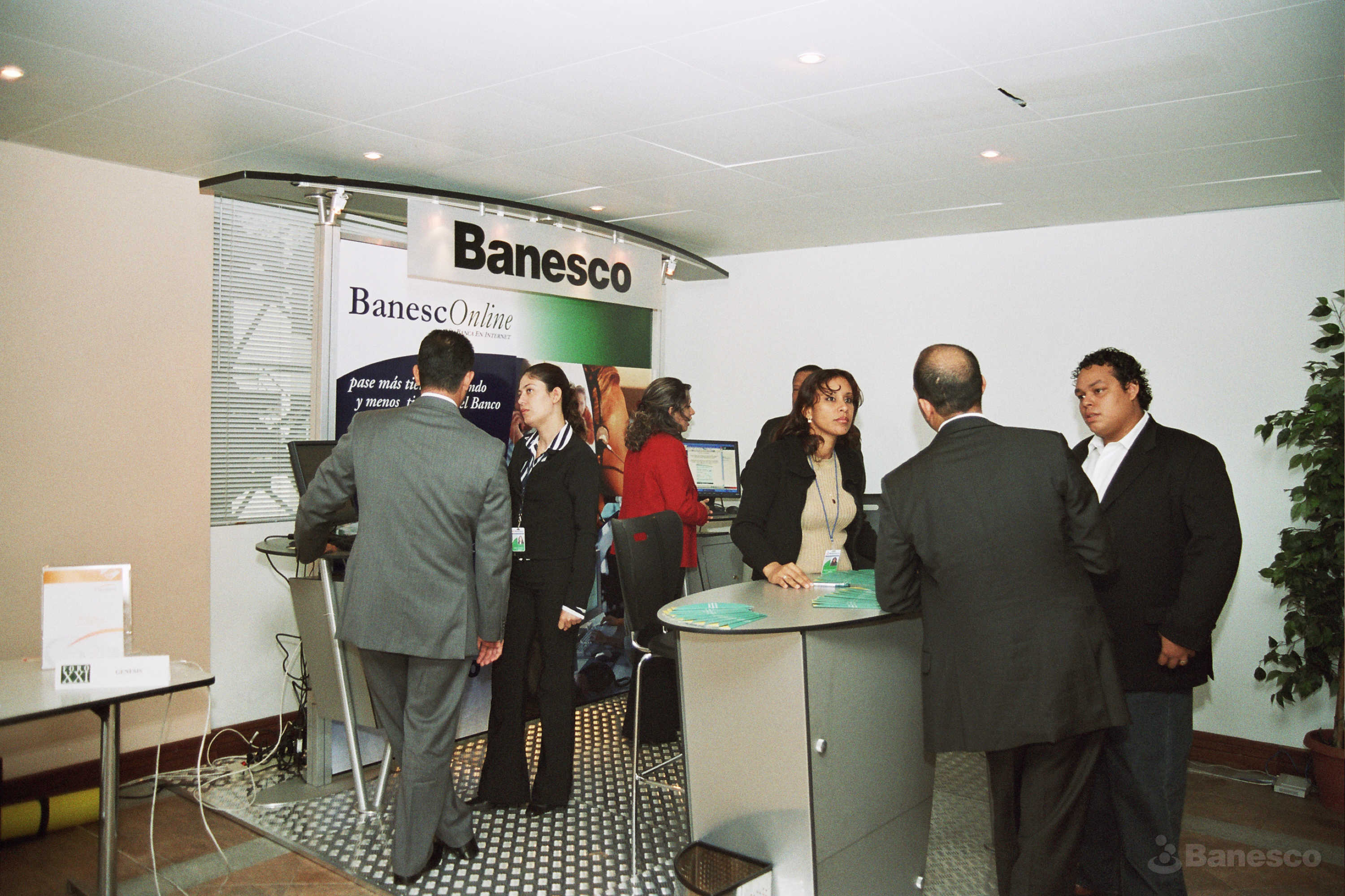 Grupo de personas visitan el stand de Banesco presente en las "Jornadas de Efectividad en Internet 2005".