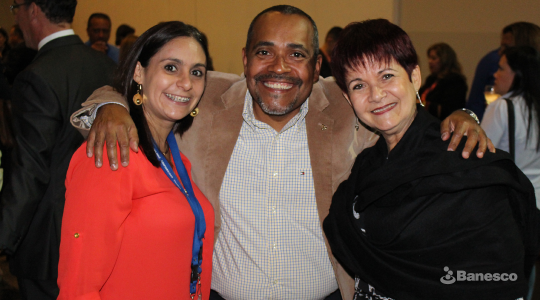 Bertha Vivas, William Villegas y Norma Trejo, presentes en el brindis con motivo de homenajear a las emprendedoras Irene Flores, Caridad Sánchez y Dahis López, ganadoras del premio de Banca Comunitaria Banesco.