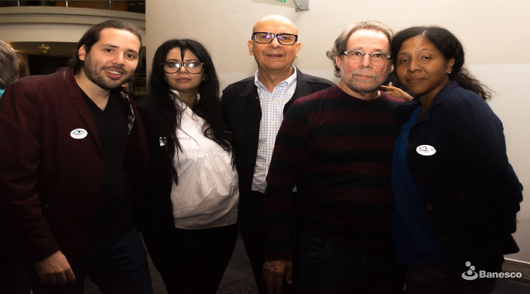 De izquierda a derecha,Mario Concalves, Aglaia Berlutti, Carlos Germán Rojas, Vazco Szinetar y Azalia Lincon en los espacios de la sede financiera, Ciudad Banesco, después de la presentación del libro "Nuevo País de la Fotografía" de la colección Rostros del Futuro del Fondo Editorial Banesco.
