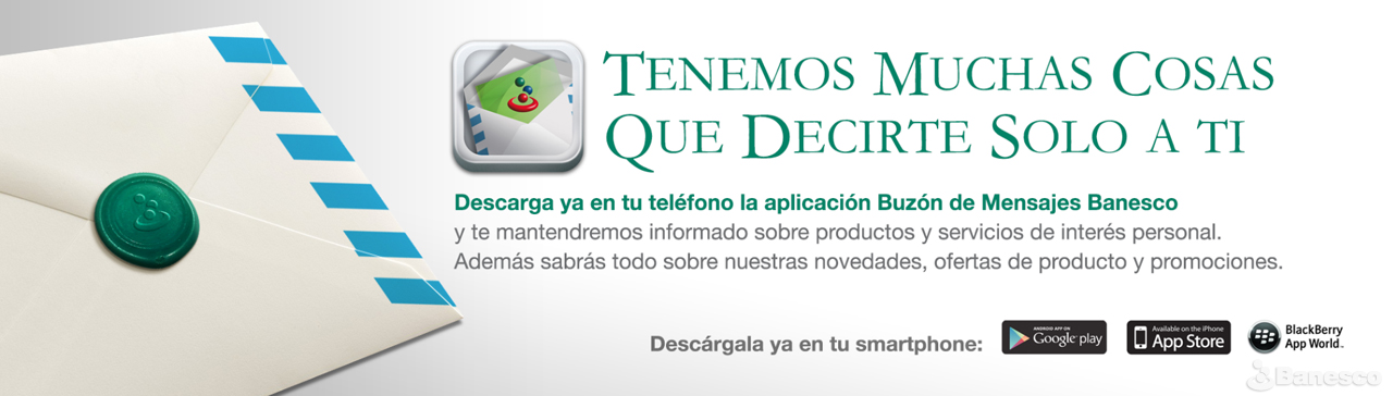 Cintillo publicitario del Buzón de Mensajes de Banesco, promoviendo la descarga de la aplicación para conocer más acerca de las novedades, productos y promociones.