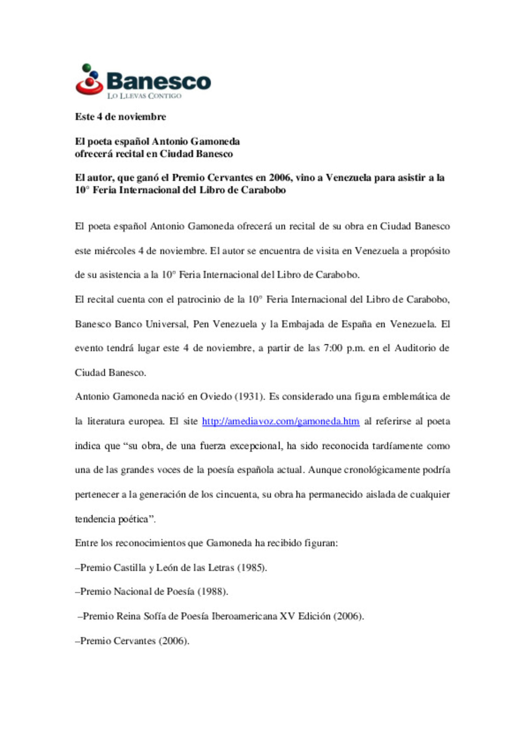 El poeta español Antonio Gamoneda ofrecerá recital en Ciudad Banesco