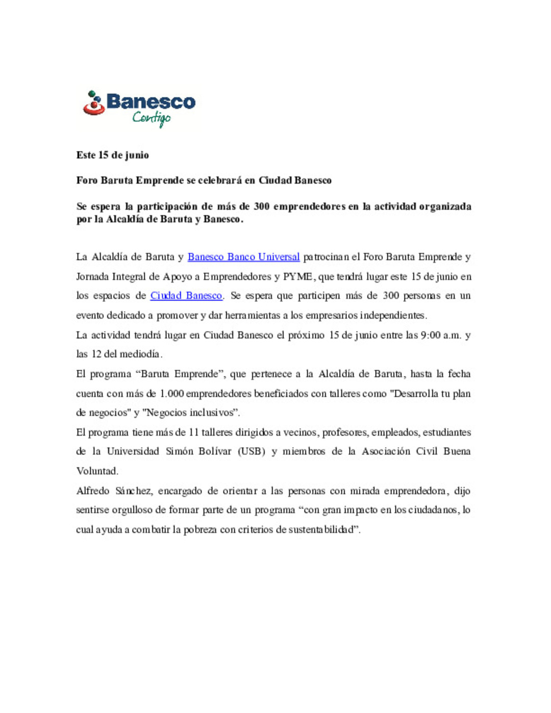 Foro Baruta Emprende se celebrará en Ciudad Banesco