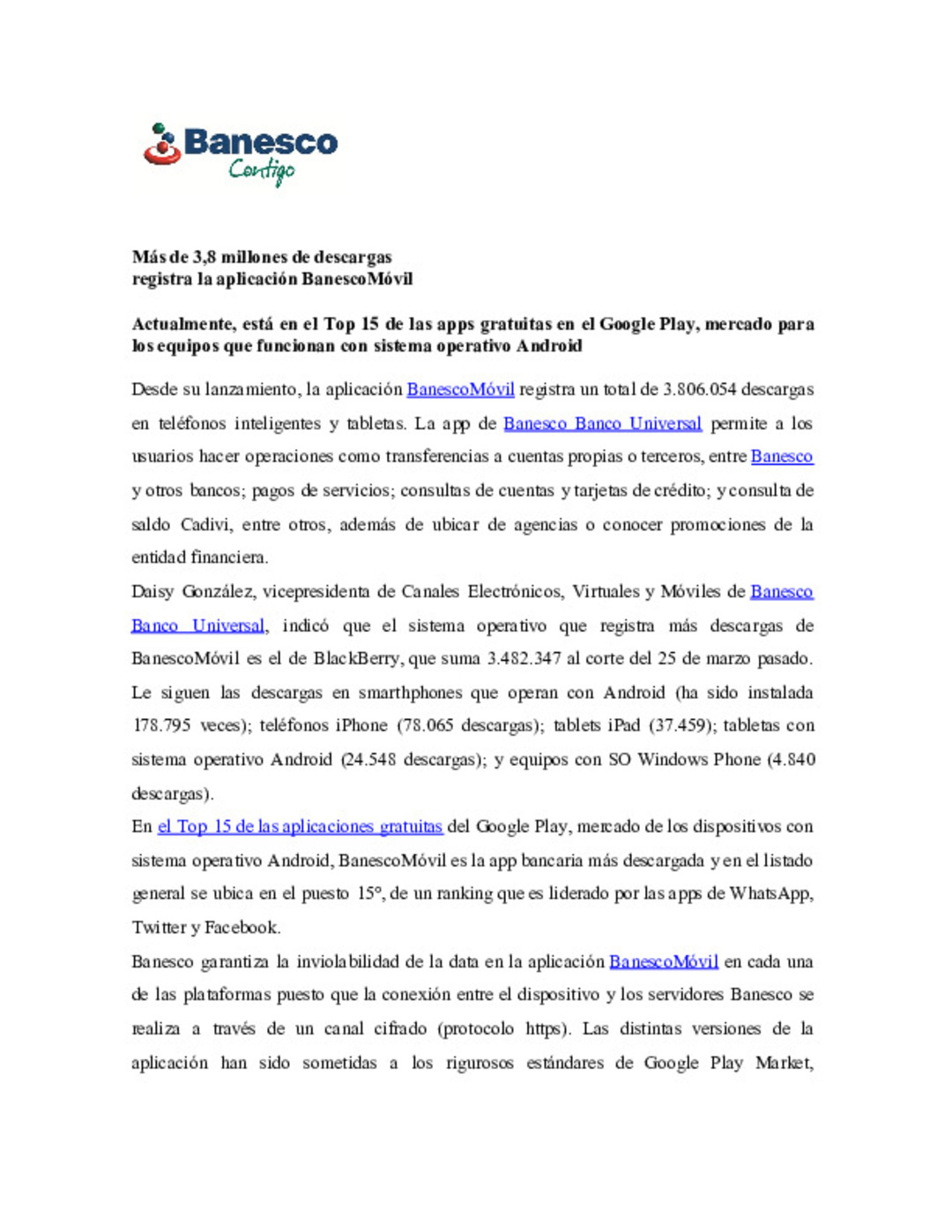 Más de 3,8 millones de descargas registra la aplicación BanescoMóvil