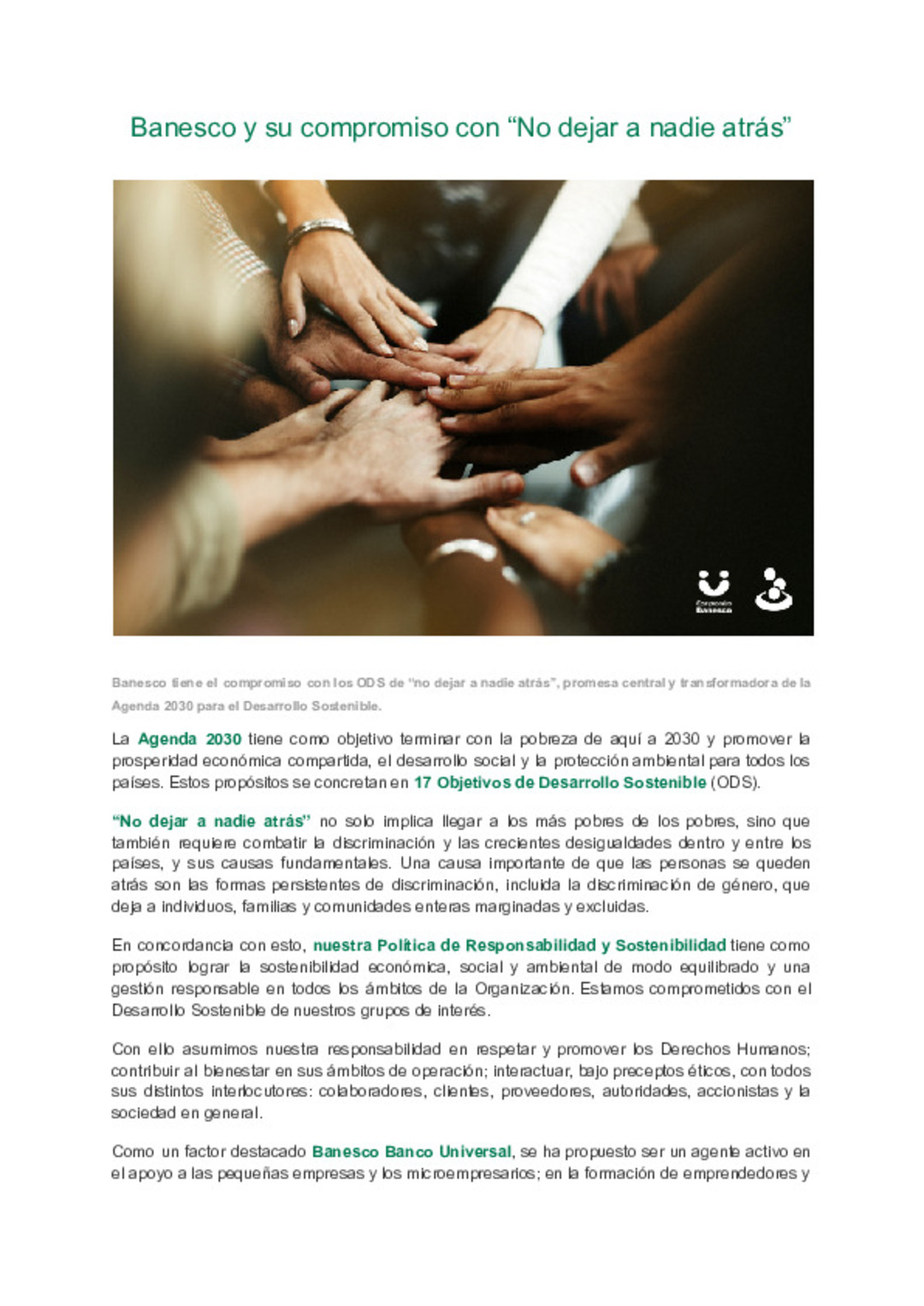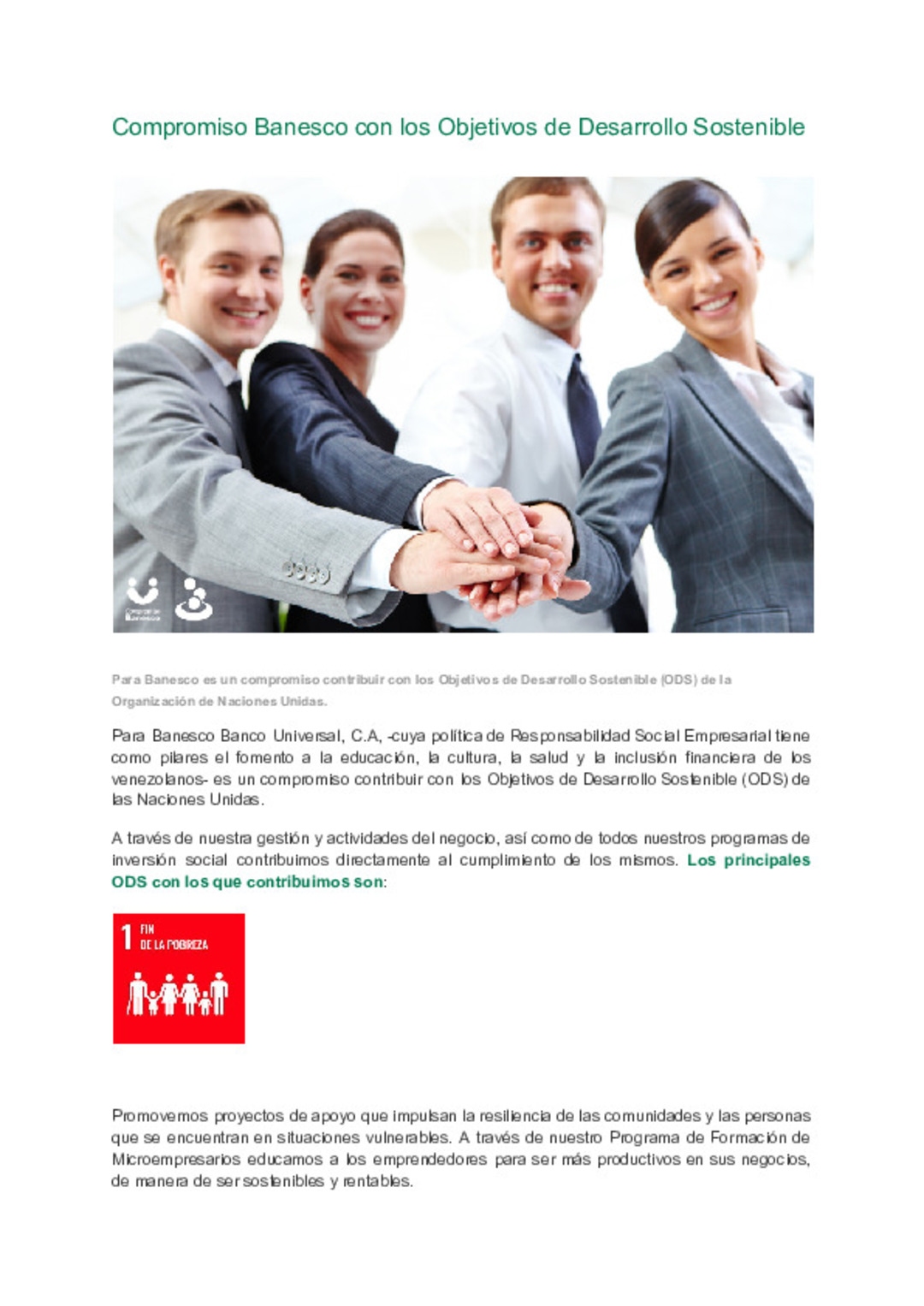 Compromiso Banesco con los Objetivos de Desarrollo Sostenible