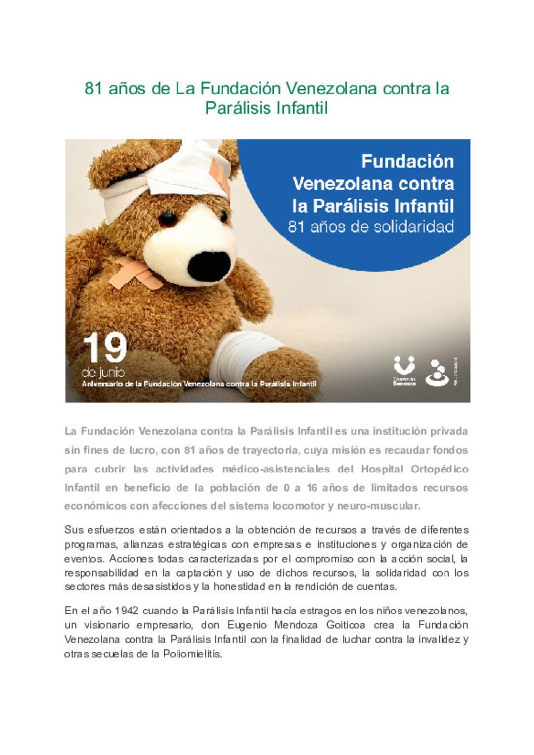 81 años de La Fundación Venezolana contra la Parálisis Infantil