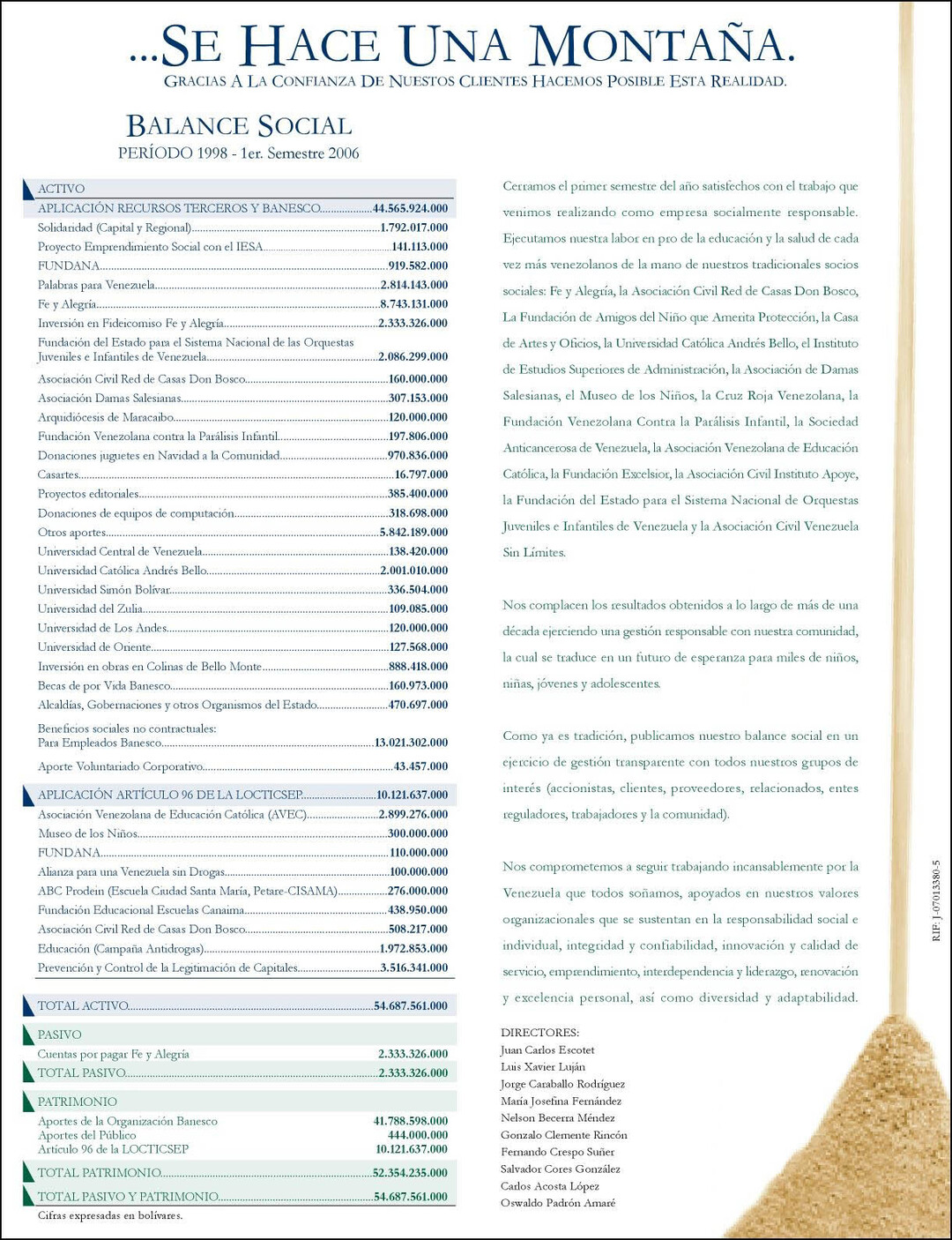 Balance Social 1er. Semestre 2006 y acumulado desde 1998