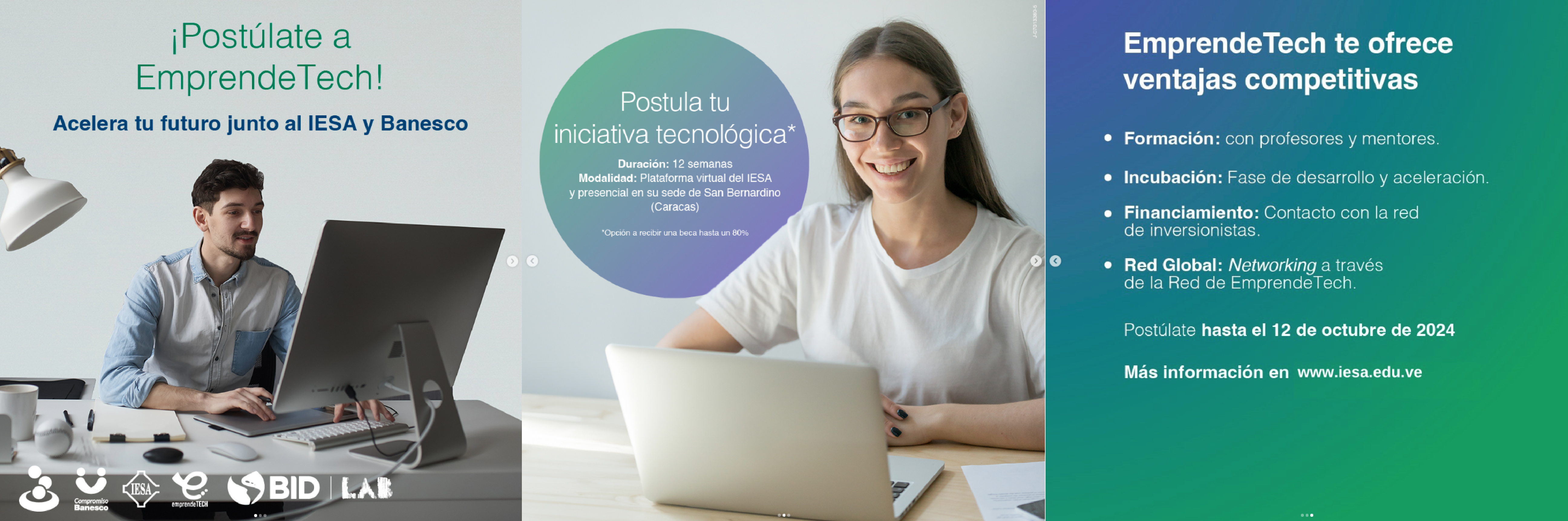 Para más información y cómo postularse, visita iesa.edu.ve. Según el número de integrantes de tu startup podrán recibir una beca hasta de 80 %.