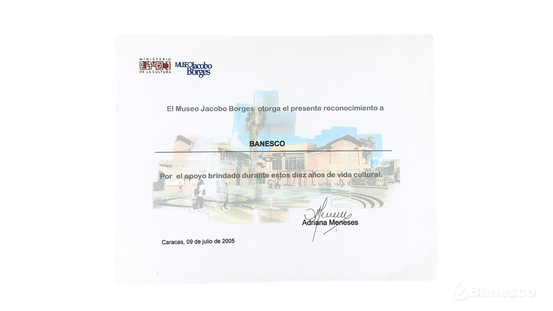 El Museo Jacobo Borges le otorga el reconocimiento a Banesco Banco Universal por el apoyo brindado durante diez años de vida cultural.