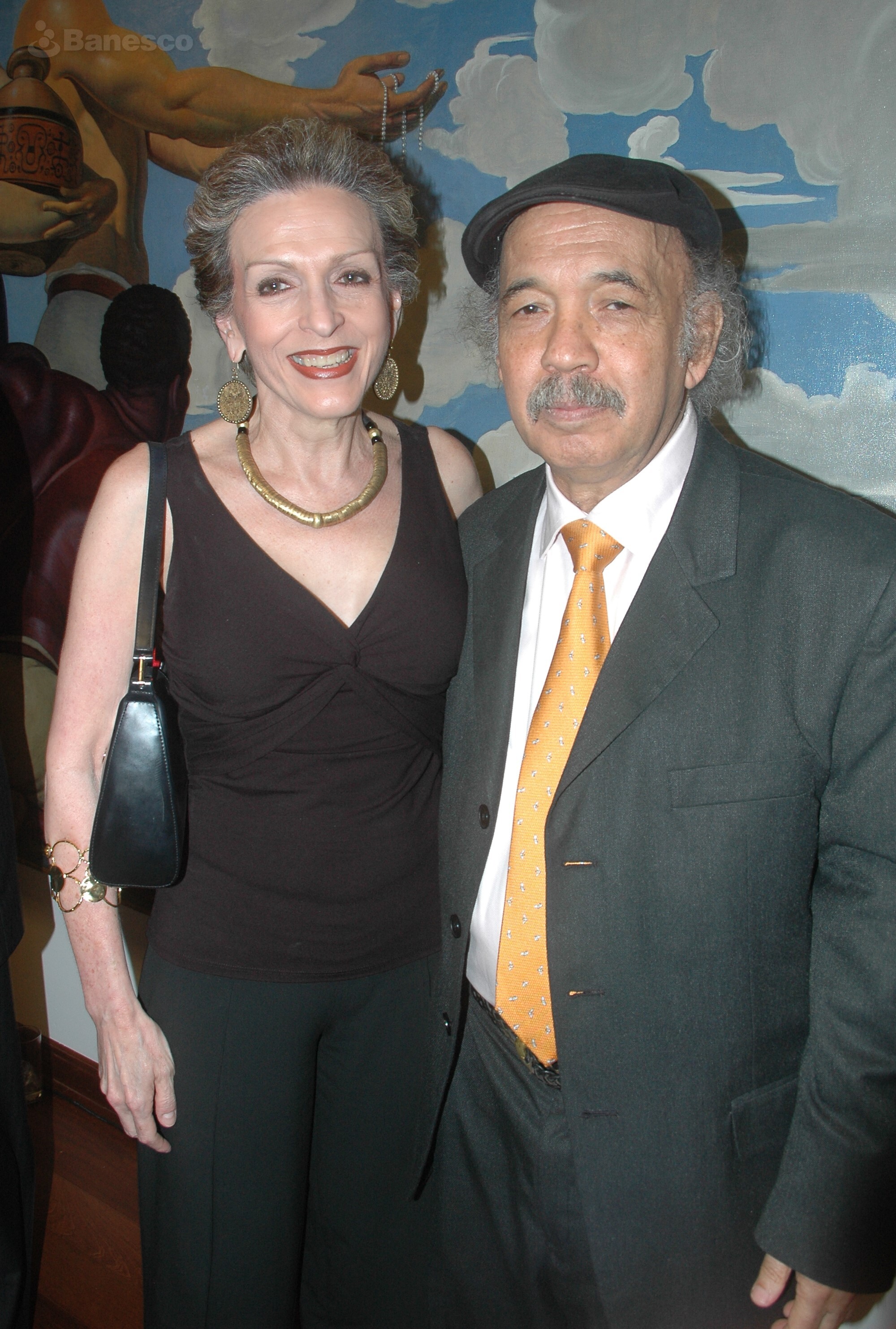 Carmen Ramia gestora cultural junto al artista plástico Jacobo Borges durante la presentación del libro titulado "Jacobo Borges: Del sol o de la luz", evento realizado en las instalaciones de Ciudad Banesco.