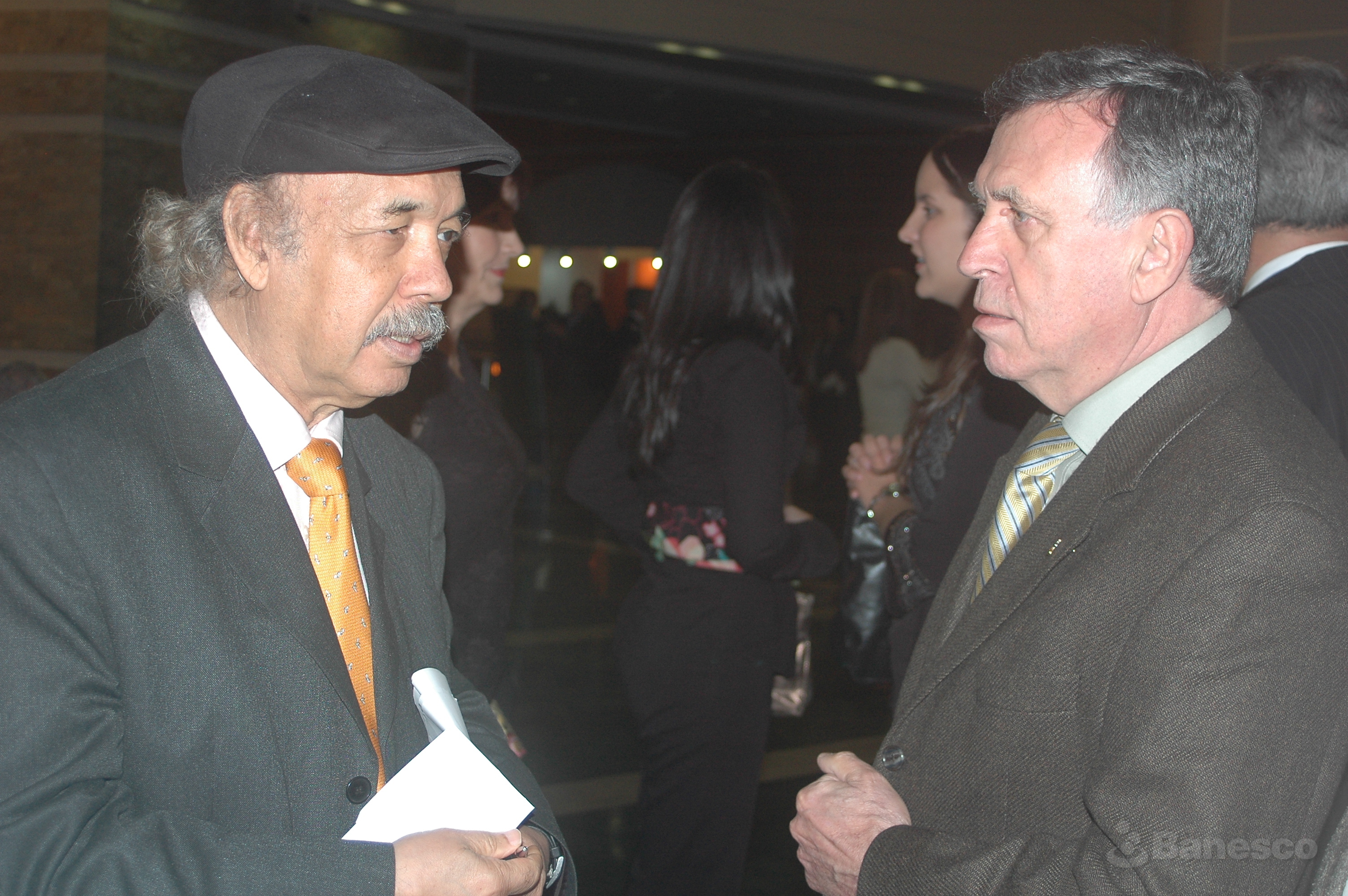 El artista plástico Jacobo Borges conversa con Fernando Crespo Suñer durante el bautizo del libro "Jacobo Borges: Del sol o de la luz".