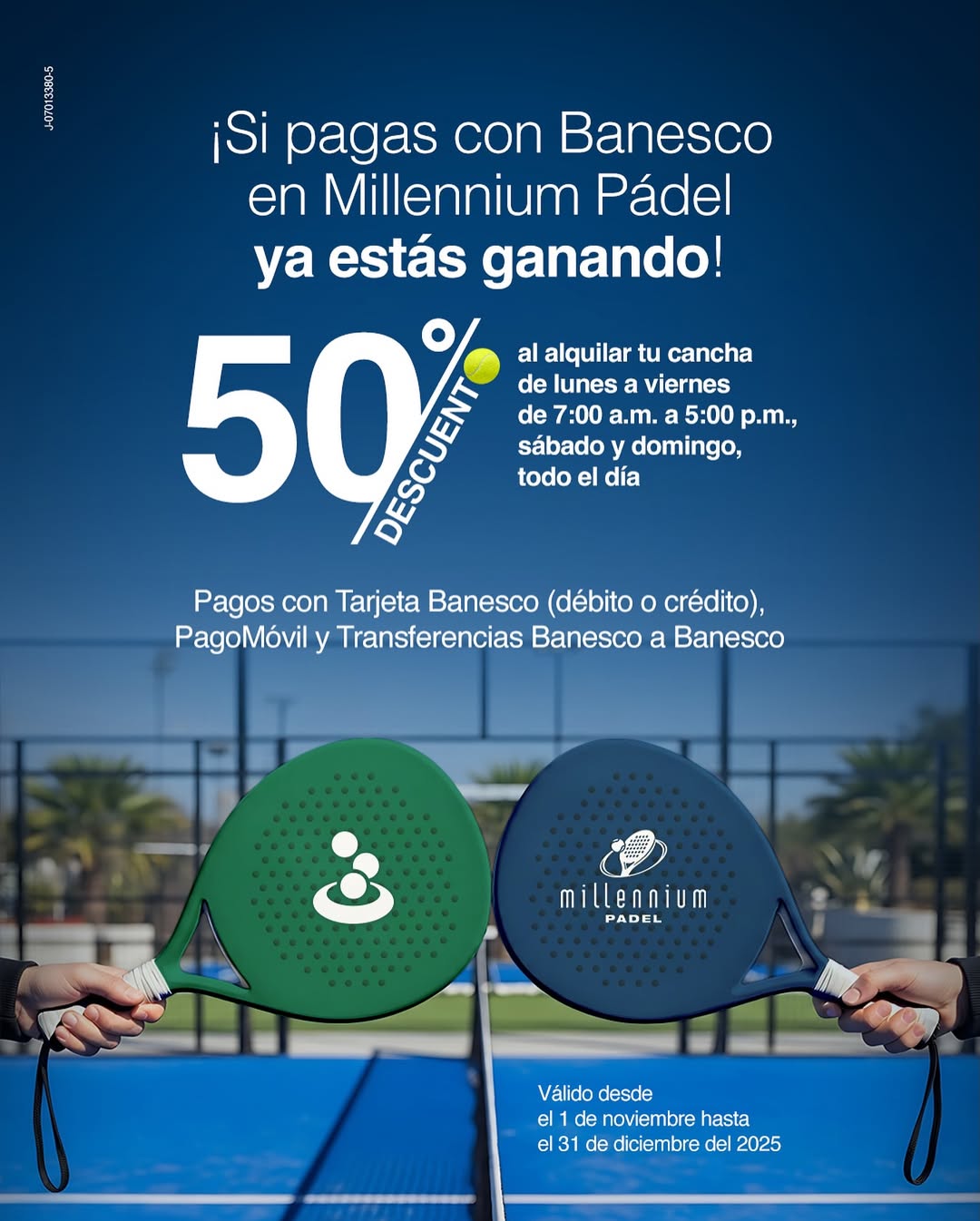 Aprovecha un 50% de descuento al pagar con tus productos Banesco en @millenniumpadel