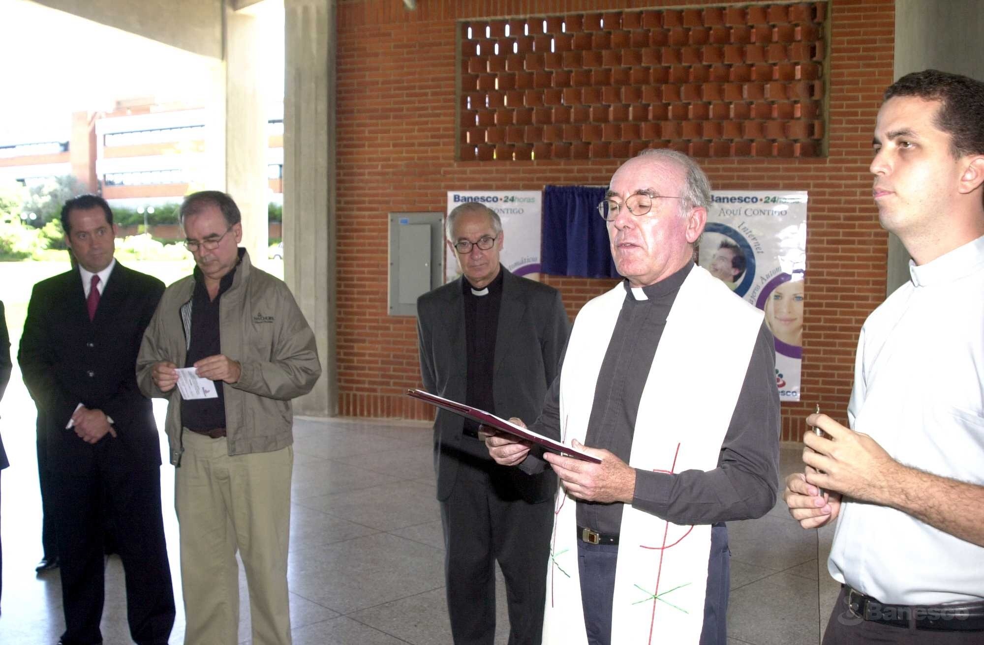 El sacerdote bendice las instalaciones de la nueva agencia de Banesco Banco Universal, ubicada en la Universidad Cátolica Andrés Bello extensión Guayana.