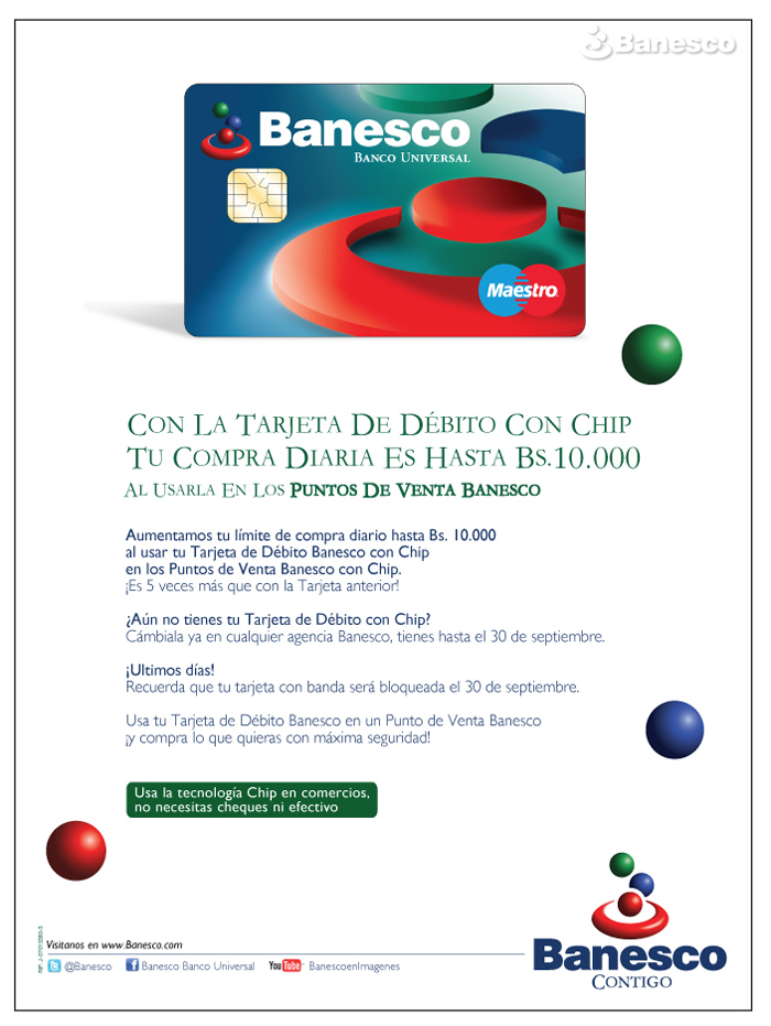 Cambia tu Tarjeta de Débito de banda en cualquiera de nuestras agencias Banesco.
