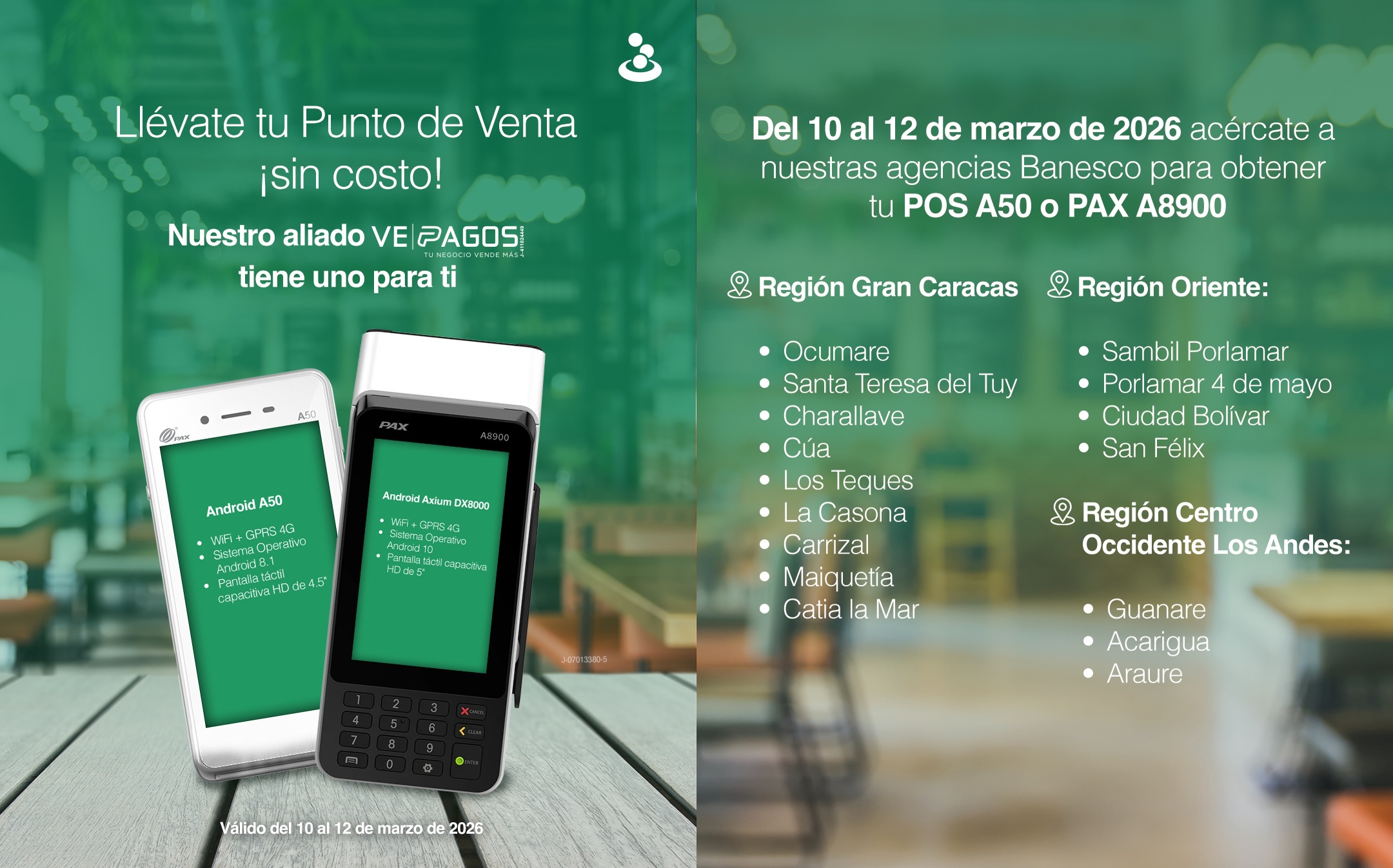 En alianza con Vepagos, conviértete en nuestro Afiliado Comercial y llévate un #PuntoDeVenta Android A50 o Android PAX A8900 ¡sin costo!, solo por tiempo limitado del martes 10 al jueves 12 de marzo de 2026.