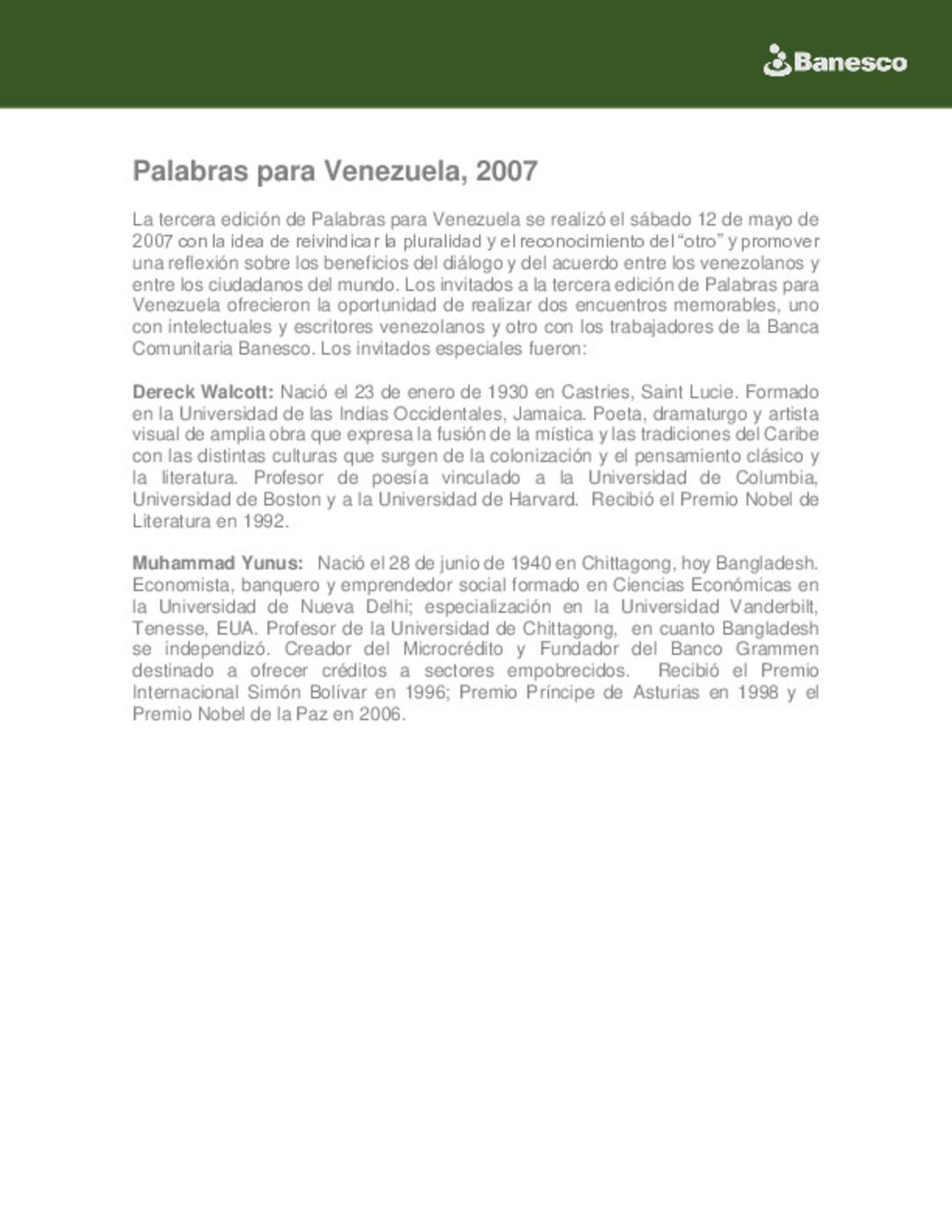 Discurso Muhammad Yunus en Palabras para Venezuela 2007